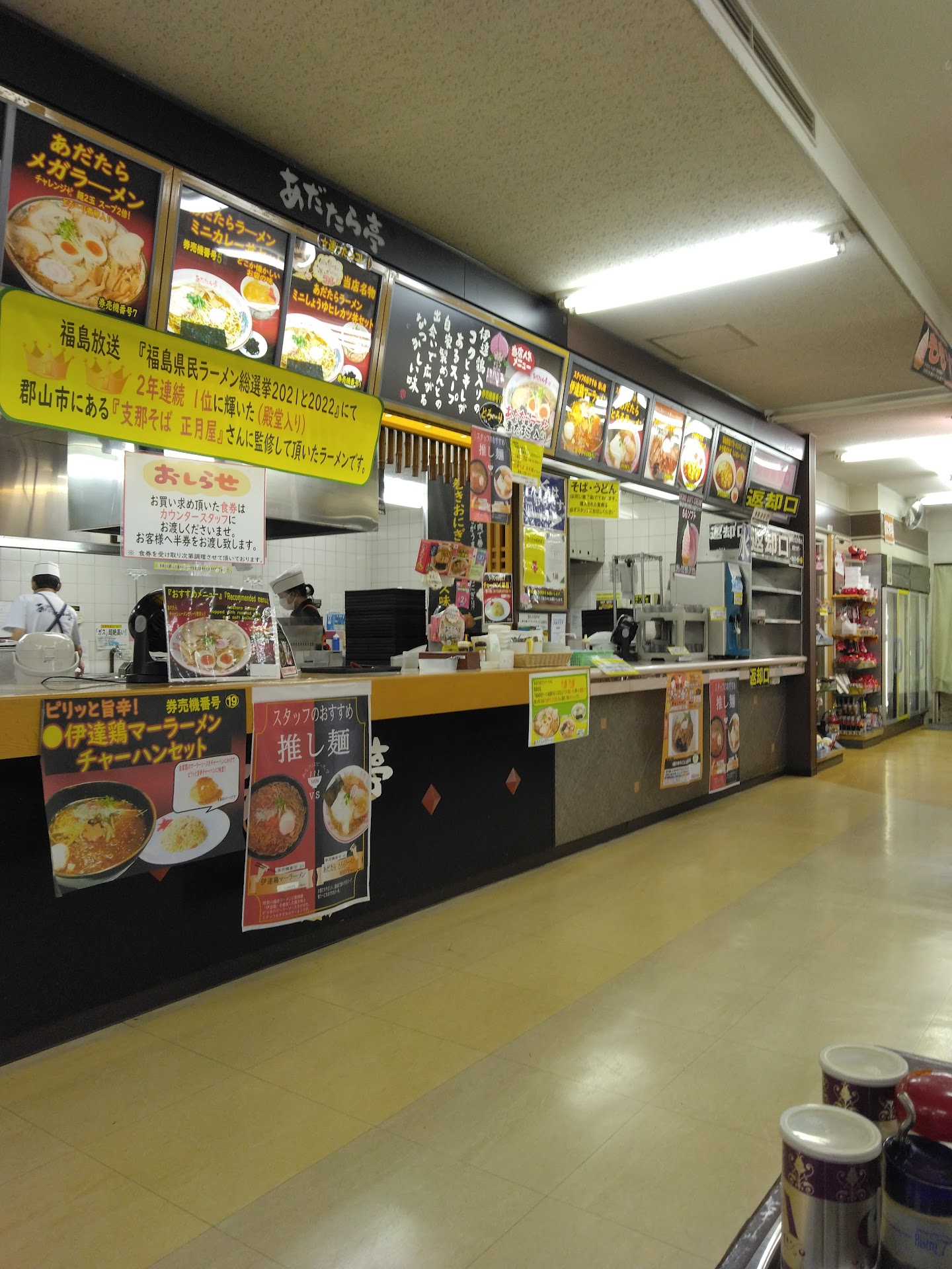 Read more23.9.12 お昼前にお腹が空いたので、腹拵えに。 「安達太良」と書いて「あだたら」と読むらしく、その名前を付けた「あだたらラーメン」を食しました。 透明感のあるスープは鶏油?の旨味と香りが濃厚で、それでいてクドさが無い、とてもコクの深いスープ。 「所詮はSAのラーメンだろうから…」と期待せずに注文したら、予想外の大当たりでした! 下手なラーメン屋のラーメンよりも美味しかったのですが、後になって知った事は、このラーメン、福島の名店「正月屋」の監修らしい…。 それを知って納得。 あっさりしているのにコクが有り、とても上品なスープなので、胃もたれする事も無く年配者にもお薦めです。 最近のSAって、凄いですね! たまにこんな予想以上レベルの料理が出る所が有るので、侮れません。 あと、序でに…ラーメンと一緒に出された「ゴボウのお茶」ですが、コレも予想外でした! お茶と言うよりも、これは立派なスープ?おツユ?です! ゴボウの土臭さやエグさがなく、とても飲みやすくて芳ばしい味。 (梅昆布茶を飲む感覚に近い) ついついお土産と...