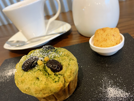 ティータイムの時間帯にお邪魔しました。 マフィンセット♡ドリンク代plus230円 抹茶と黒豆のマフィンです。