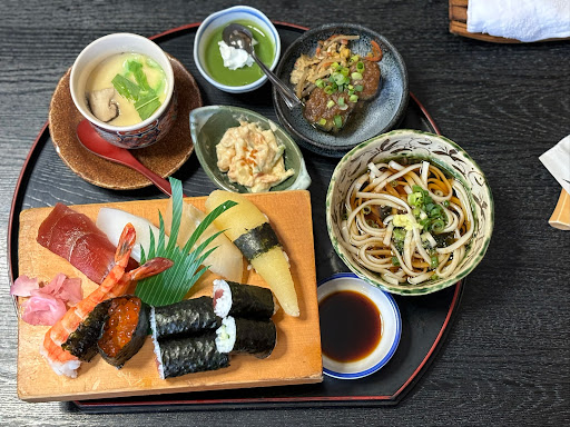 ランチメニューに、メイン料理とご飯物(お寿司、鉄火丼、鰻のひつまぶしも選べる)のセットもあるみたい。