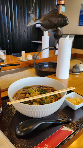 Soba spot that's clearly a big hit amongst locals. Roadside, a few minutes' walk from Mukawa Station. I had the warm kinoko soba, which was nice and filling, with chewy mushrooms and superb noodles. Service is warm and friendly. Interior is traditional-esque and isn't the largest, but there are plenty of tables, with a mix of tatami and standard seating. Solo diners can use the large central table, and eating here has a rustic atmosphere...