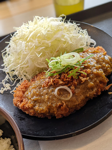 Read more2024.11 黒カレーを食べてみました。 事前の想像より倍以上スパイシーで、ココイチで言う2辛ぐらいの印象でした。 自分はそんなにお腹が強くないので、翌朝の催し物はご想像にお任せします笑 ただし、腹はアレでも口はスパイシーなものが好きですので、ちょうど良いぐらいの味でした、でもコスパを考えると、ノーマルとんかつ系にしておけば同じ値段でエビもつけられそうだったりご飯を増量できるぐらいなので、カレーがお好きな方にはありと言うぐらいでしょうか。自分も一度は食べておけて良かったです。