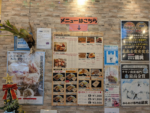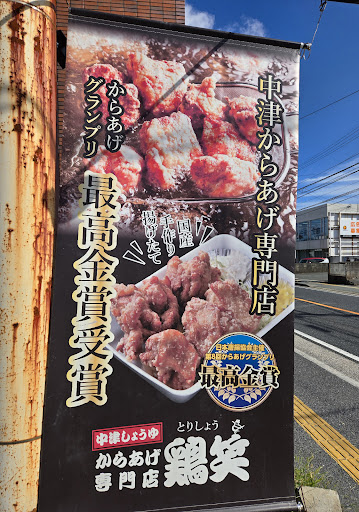 先日テレビで唐揚げNO1の鶏笑を見て、一度食べてみたいと思い福岡市内からやって来ました。もも肉を200グラム注文して約10分して出来上がりをテイクアウトして、一つだけ車の中で食べてみました。出来たてはさすがに熱かったですが、醤油ダレ部門最高金賞を受賞しているだけあってさすがに旨い! 外の衣はサクサク中はジュウシーイでとても美味しいでした! 福岡市内の家に着いて冷めた唐揚げを食べましたが、冷めても美味しいでした! 残念だったのは、もっとたくさん買って帰れば良かったのと福岡市内にお...