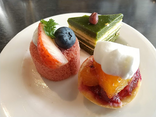 テラスの先にはプール、海が見え、天気が良くて良かったです。 今回はアフタヌーンティーを利用しましたが、トロピカルなデザートが何点かあり、季節感を感じられてとても良かったです。 セイボリーにローストビーフがありましたが、その下にポテトサラダ?がありとても美味しかったです。 またアフヌンの後にミニパフェがあって最後にさっぱり出来て良かったです。