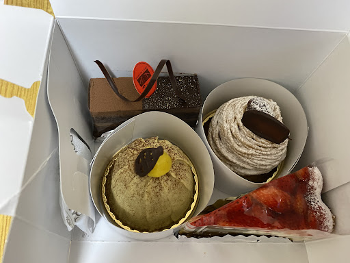 Read moreお店の人の対応がイマイチです。ケーキって楽しい気持ちで買うのに、店員さんが笑顔もなくくらーい感じだと、こちらの気持ちまで暗くなっちゃう。 モンブランが2種類あって、どちらが美味しいかを伺いましたが、 『片方が和栗で、もう片方は種類が違う』 と言われて、どちらが美味しいか聞きましたが、 好みなんでどちらと言われても。。。 と言った返事。 素人は和栗とか言われてもわからないです。 結局和栗の方を買いましたが、普段食べてるモンブランとは結構味が違って、 『オーソドックスなモンブランが好きならコレ、あっさりしたいなら和栗』 みたいに言ってくれたらいいのに。と個人的には思いました。 ケーキは全体的に小ぶりで、その割にはお値段が高めだと思います。不味くはないです。