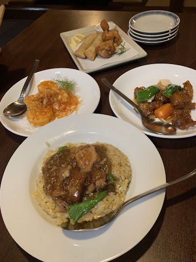 ランチはメインに1品サイドメニューから2品選べました。 むなかた皿うどんランチと豚バラチャーハンランチをいただきました。 むなかた皿うどんは新鮮なブリの切り身(加熱)がゴロッと入ってました。 麺の固さも味付けもよく、博多皿うどん発祥のお店を彷彿とさせる味わいでした。 豚バラ炒飯は大きな豚の角煮が乗っており、お肉は柔らかくて八角茴香の香りがふわっと広がり味もよく染みてました。 炒飯そのままでも美味しいけど食べ応えあって楽しめました。 サイドメニュは杏仁豆腐とスープにしましたが他にもいろいろありました。