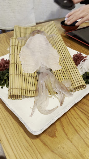 Read more저녁 식사로 오징어정식 2인분(1인분 불가, 3080앤/1인당)과 추가로 생선조림음식을 주문했습니다. 주문한 오징어정식이 오징어를 제외한 기본 상차림을 보면 다소 너무 비싼게 아닌가하는 생각도 듭니다. 그런데 살아 있는 오징어회를 보는순간 그 살아있는 오징어회 자체에 놀랐고 그 몸통의 칼집마디를 간장과 와사비에 묻혀 먹으면 부드러움과 탱탱함의 맛감에 반했하게 되네요. 몸통 다 먹으면 다리와 몸통 나머지 부분을 튀김으로 만들어 주시는데 그 튀김의 오징어살맛이 딱딱하지 않고 부드럽네요. 오징어회로 못 먹어본 경험이었네요! 생선조림은 부드러운 상점과 양념이 잘 어우러져 나쁘지 않았다고 해야겠네요. 젊은 여직원분께서 파파고까지 열고 메뉴 설명해 주시고 서비스도 훌륭합니다. 가게 분위기는 좀 좁은 듯한데 몇 개의 작은룸이 있네요. 이...