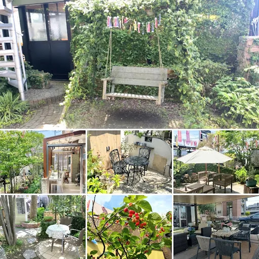 JR赤間駅から車で約5分 ルミエール赤間店からすぐ近くにあります。 ガーデニング専門店「シャイニーガーデン」が運営する、 自然に囲まれた癒しのカフェで お庭にはコンセプトの違った六つのお部屋と随所にテラス席があります。 お部屋は・・・ □ガーデンルーム暖蘭物語(要予約)🐶OK 白を基調とした女の子が絶対好きなお部屋 (ピアノとデッキランあります) □ガーデンルームココマ 陽の光たっぷり感じられるおしゃれ部屋 □ココマⅡ 小さなお子様がいるママ友同士のランチも、安心して楽しくお食事が出来るお部屋 □ガーデンルームジーマ🐶OK 優しい日の光を感じながらゆっくり過ごせるお部屋 □オールグラスポーチ🐶OK 可愛いくまさん達が一緒にお食事してくれます笑 □ミニハウス 靴を脱いで寛げるお部屋
