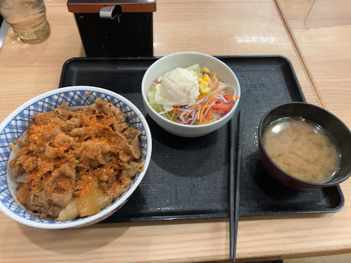 Read more吉野家です。 昔は黙々と食べサッと帰る店で、店員に求められるのは勢いと、早く牛丼をだすこと。 今は、可愛いいBGMが流れる小綺麗になりました。店員も男2人でデカイな声でペラペラ雑談。注文書ないからそのままレジで会計しに行くとバイト君ブスくれて席に探しに行くんだけど、君ら話に夢中過ぎてキッチン奥から持ってきてないんだよね。。路線は迷走してるし、時代とはいえ、まあ廃れるわけだよね。。 店としては星1ですが味は安定だからね。 しかし...