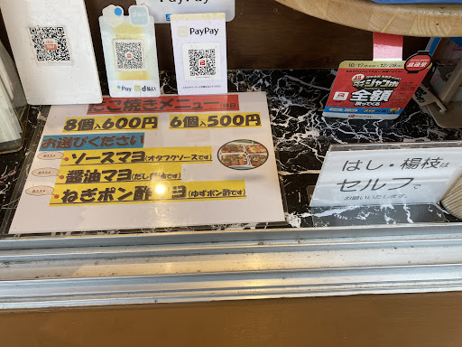 Read more大人気のお店だけあって、外はカリッとしてて、中はふわとろで、とにかく、生地にしっかり出汁がきいてて美味しい。 ソースが少ししょっぱかったので、醤油マヨが1番美味しかったです。 大きめのたこ焼きで、蓋で潰れてしまい、残念だったので、今度、蓋をしないでもらおうかなぁ…と、思ってます。 9月に、また瀬波温泉に泊まりに行くので...