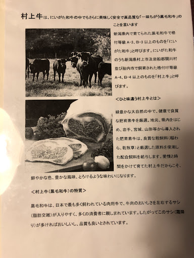 Read moreこちらの料理を目的に新潟市から電車に乗ってはるばる村上まで足を運びました。 折角なので当店で一番高い村上牛のヒレステーキと、レアステーキ丼の上をいただきました。 ヒレステーキは150g で12540円と良いお値段なので期待していましたが、食べてみると期待外れでした。 まず、注文を取りに来た若い女性(アルバイト?)がステーキの焼き加減を聞かないので、焼き加減は聞いてもらえるのか確認したら、「多分大丈夫ですぅ」と心もとない返事。 一応ベリーレアでお願いしましたが、出てきたのは両端に火が入りすぎてミディアム状態、真ん中あたりはミディアムレア。 お肉の質自体もスジっぽい所があったり、サシが入っている感じではないし、味付けの塩加減が微妙に強い。 下に引いてあったニンニクの芽などは塩っぱかった。 次に出てきたレアステーキ丼は、薄切りのほぼ生のお肉はなかなか美味しかったけど、味付けの醤油ベースのソースがまた塩気が強く単調で途中から飽きてしまった。...
