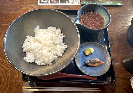 Read moreなぜか宿泊施設になっているので客室→料理ということで。 十日ほど前に電話したところ、13時からの部が取れました。11時と12時の部はたちどころに埋まってしまうみたいですね。予約の際にメニューも伝える必要があるのでしっかり決めてから電話しましょう。一品料理みたいのはお店で追加もできるみたいです。 いざお店に行くと当日受付の分も終了だったようで予約して良かった。13時ピッタリから順番に名前を呼ばれます。 村上ならではの鮭料理を色々楽しめる十一品セットがいいかと思いましたが、どう考えても全部ツマミ。車なのでご飯メインの「はらこ飯」をお願いしました。ほぼ五千円のイクラ丼です。どんなの出るんだ。 まずは前菜四品と出汁が運ばれてきて、店員さんが正座して村上鮭のお話を聞かせてくれます。 前菜は白子の寒風干し、かぶと煮、生ハム手まり寿司、焼漬。出汁はミツバを入れて吸い物がわりだそうです。 わかっちゃいましたが、やっぱり全部が極上の肴。なんで昼しか営業していないのだろう。 その後主役のはらこ飯と塩引きが登場です。きっかわさんのはらこ醤油漬け、毎年買っております。大粒なのに皮が柔らかなふわふわイクラ。特製のタレに漬けられて間違いなく最高のメシの友。そのご飯は関川村の炊きたてコシヒカリというのだからたまりません。塩引きで少しご飯を食べたらドサーっと全部かけてしまいましょう。 はらこや塩引きはもちろんと言うか思っていたよりさらにうまいのですが、ついてきたぬか漬けがまたすこぶるうまい。もっとください。 最後はデザートがわりに自家製の甘酒です。砂糖ゼロなのに圧倒的なブドウ糖甘味。すごい。これだけで朝食になるほど米粒を感じる。間違いなくデザートですね。 少しお高いかなと思っていましたがお値段以上、村上の鮭のすごさをたっぷり思い知らせていただきました。ぜひ十一品以上のセットを頼んで飲みたい…本当に宿泊施設になって夕...