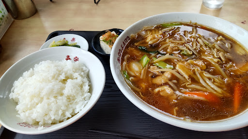 Read moreランチで伺いました。 駐車場は坂の途中にあるものの、段差も余りなく入れることが出来ます。 のれんをくぐると老夫婦とその娘さん、お孫さんと思われる全員に元気よく挨拶され、期待が高まります。 なにしろ猛暑日でもありましたので、麺類よりもご飯物の気分です。メニューをくまなく見ていると、カレーチャーハンが目に留まりましたので、そのまま注文しました。 店内は開けっぱなしではありますが、案外風の通りが良いのかそれほど暑さは感じませんでした。 そうしているうちに出来上がり。 カレーの風味が主張し過ぎることは無いが、しっかりカレーの香りがしています。 若干油っぽさはありますが、チャーハンとしてはかなり高レベルでとても美味しいです。 価格も手頃なものが多いし、他のメニューも食べてみたいと思えるお店...