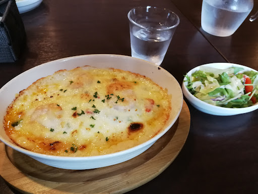 Read moreランチで訪問。オープン直後に一度行き、料理や雰囲気で特別感が感じられず二度目が無かったが、最近評判が良いようなので再訪。 海老と野菜のチーズドリア(1050円) チーズがタップリで食べ応えあり。野菜たっぷりのケチャップ?ライスで色々な食感が楽しめた。おくらが良かった。もう少し味に特別感が欲しいが、ボリュームもあり満足。 濃厚海老クリームソースのスパゲティー(生パスタ選択 1400円) 味はまずまずだがボリュームが少ない。割高感あり。前回訪問時も感じたのだが、皿が小さいせいで料理の運ばれて来た時にアレッ?とテンションが下がる。もう少し皿に拘るとずいぶん印象は変わると思うのだが勿体ない。 接客は申し分ないが、料理の出し方は変えて欲しい。サラダはメインと一緒ではなく先に出して良いと思う。パスタとドリアが同時に出てきたのは良いが、パスタが冷めているくらいならできた順に出して欲しかった。食後のコーヒーも特に印象残らず。豆もだがカップにももう少し拘りが欲しい。 初回訪問時に感じた印象からあまり変化はなかった。ただ値段も安めで普段気軽に行くお店としては良いかな。室蘭では数少ない...