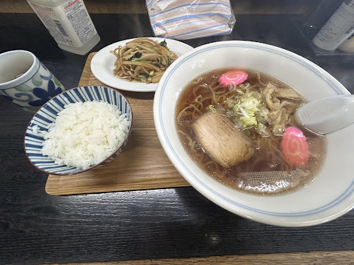 透明感のある醤油スープは、舌に馴染みつつも、どこか懐かしさを感じる味わい。 汗をかきながら、縮れた腰のある麺を啜る。スープのうまみが程よく絡み、箸が止まらない。 そして箸休めには、香ばしく炒められた野菜炒め。ライスに乗せてガッとかき込むと、口の中はもう幸せのフルコース。