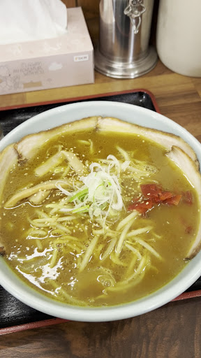蘭たん亭さん。 カレーラーメンが食べたくなり室蘭市内のお店を探してたどり着きました。駐車場が広くお昼時でも入りやすいお店です。この日はもちろんカレーラーメンを注文。チャーシューをトッピングして小ライスも追加です。11時のオープン間もなく入店。自分は2番手です。若い店員さんがテキパキかつ丁寧に接客してくれます。5分少々で着丼。辛味パウダーが付属されています。辛さを調整するタイプなのか?ひとまずスープを一口、なるほどかなり甘口のカレースープです。さらにとろみが強く、同じ市内の元祖をうたうお店と比べると好みが分かれるところですね。 辛口が好きなので早速パウダーを多めにふりかけ味変をしながら食べ進めます。トッピングのチャーシューもトロットロの柔らかさでご飯が進みます。なんと赤い福神漬けがトッピングされていて思わずライスに乗せて食べちゃいました。最後まで熱々のカレーラーメン、美味しかったです。食べ終わる頃には店内には沢山のお客さんがいました。おそらく地元の方々だと思いますが、自分以外でカレーラーメンを注文した人がいなかったのが不思議でしたね。チャーハンというお声があちこちのテープルから聞こえたので次回チャンスがあれば食べてみたいで...
