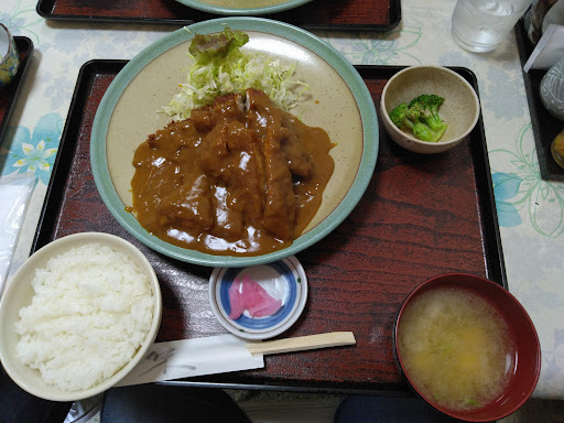むつ市で3本の指に入るオススメの食事処。 口コミ1番人気のおろしトンカツ定食を頂きました。ビックリするぐらい大きいボリュームのあるとんかつですが、さっぱりの大根おろしと共にさくさくのトンカツはペロリと食べれます。 女性スタッフの接客もテキパキ気持ち良く、ランチ遅めの入店でしたが笑顔で迎えられ、お腹も心も満足できるお店でした。 メニューは定食中心でラーメンからナポリタン迄多岐に渡ります。個人的には馬肉ラーメンが気になりました。新年に伺った時は、『昨年はありがとうございました。今年も一生懸命頑張ります。』と手書きの大きな張り紙が店内の至るところに貼ってあり、家庭的な温かいお店だと感じました。地元から愛されるのがわかります。これからも続いてほしいです。 お店の前の駐車場は車4台位でいっぱいになるので、満車の時はお店のすぐ横にある...
