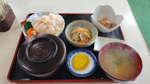 Read more見た目、やってる・・?という感じの、さびれ具合のいい(失礼)昔懐かしいタイプのドライブイン。駐車所はトラック数台も余裕で止まれる広さ(砂利敷) 水は基本セルフ。 ホタテ刺し身定食をいただく。 これが当たり!ホタテ刺しの量もちゃんあるし、貝紐もついてくる。大根のツマまで美味しくいただけました。店内も広く混み過ぎず、一人でも落ち着いて食事ができます。座敷とテーブル席も複数家族いても充分。経営しているご夫婦も口数は少ないが仕事はしっかりされる職人肌。ご主人が「昔、旅の一座で役者でもされてましたか?」という感じでした(笑) これから下北ツーリングの際は、ここは立ち寄りたい、特にホタテをしっかり味わって帰りたい人には穴場スポット。 前の道路がスピードのでる直線なので、出入りの際には注意、店に気づかず通り過ぎも注意(笑) 仕方ないことでは...