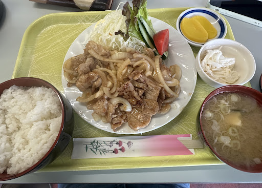 日曜の12時頃昼食探しの際にこちらの評価が良さそうだったので訪問しました。 ちょうどお昼時ということもあってか店内は8割程、地元の人気店という感じで賑わっていました。 メニューは過不足ない品揃えで人気のランチ類の一通り、そしてドリンク類は喫茶店風。 いずれも捨てがたい中から頼んだのは焼肉定食(¥1,200) 家族経営のようで店内が混み合っている時には若干提供に時間がかかるのはご愛嬌でしょうね。 しばし待つと提供されたのは見るからにボリューミー、ほんのり生姜の効いた焼肉定食といった感じ。安定の美味しさですね。 お肉は豚バラでちょうどいい厚みがありしっかり食べた感アリ。 玉ねぎも柔らかくきちんと火が通っておりタレをしっかり吸っていて美味しい。味付けも濃すぎず薄すぎずご飯が進むこと間違いなし。 そしてそのご飯は普通盛りでもしっかり量があって、適度な濃さのお味噌汁もたっぷり、そして付け合わせは山芋の千切りもいいサービス、たくあんも程よい厚さと大きさで満足感ありますね。 特に機を衒った事はないんだけど、とても満足いく定食でした。 また別のメニューも試してみたいので近くに来た際には再訪します...
