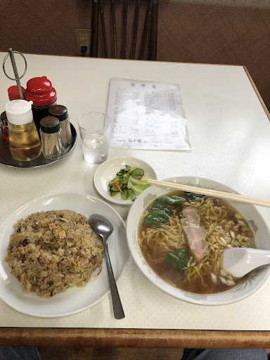 Read moreいつも気になり早数十年、初めて入りました。頂いたのは、五目チャーハンと醤油ラーメンです。チャーハンはタマネギの炒めた風味が効いてました、次は小海老チャーハンにしよう。 醤油ラーメンは煮干しだしの効いたザ醤油ラーメン!と言う感じで私好みど真ん中でした。青森の『まるかいラーメン(の酸味を抜いた感じ)』に近い?又は弘前の『高橋屋(の煮干しを少し抑えた感じ)』に近い?ラーメンでした。オススメを聞いて『塩ラーメン』と言ってくれたのに『醤油ラーメン』を,頼んだ不届き者でした、苦笑。 いずれにしろようやく食すことが出来ました😌食べれたことに感謝。 (人の食べたあとを載せるのは論外と分かっていながら、敢えて載せました『全つゆ』完了) 雰囲気⭐️3にしたのは可も...