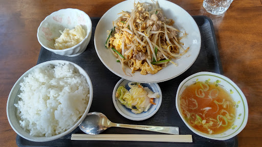 20230129 家族3人で日曜日の昼食。11時30分頃だが半分は埋まっていた。私は肉にらラーメンを注文。残り二人は広東麺とルースーラーメン。うーん、餃子と炒飯もたべたいな。肉にらラーメンは中華料理屋のラーメン。ラーメン専門店ではないこの町中華味。たまりません。驚いたのが餃子の旨さ。焼いてある面のパリッと香ばしい感じと反対側のツルンペロンの感じがたまらない。もちろん、餡もウマウマ。あと、気づいたらどんぶりかすごくチャーミング。ハートマークが笑ってません?あと、なんでM.N?私か?明華(M)園(N)?気になったので、どんぶり可愛いですね。オリジナルですか?と、尋ねたら、ありがとうございます。違います。とのことでした。次はどこでこのどんぶりと会えるだろうか。 20220105 年前に訪ねたら、臨時休業の張り紙。年をまたいでリベンジした。定食の3は豚肉と卵のもやし炒め。安定の、速い、安い、旨い。700円でお腹いっぱいである。ホントご飯に合いまくりの炒めものだ。卵は確実に2個以上は使ってある。ちなみに定食1はラーメン、半チャーハンで、これも700円。コスパはすこぶる良い。 はやい、やすい、うまい。 20181107 再訪しました。 ランチは日替わりで4種類。 1番のラーメンと小カツ丼を注文。ここは、本当に速い。開店間もなく1番乗りとはいえ、5分待っただろうか。あっという間に運ばれてきた。ここは、本当にうまい。青森の辻井を彷彿とさせる極細の縮れ麺。そのサクサクとした歯ざわりがたまらない。(聞いたところ、太麺もあるそう)スープは中華屋のしよっぱめ。カツ丼はつゆだくタイプだが、こちらはショッパクナイ。ポテサラと漬物もつく。そして、ここは、本当に安い。これで650円。ラーメン単品なら400円。はじめのコメント、はやい、やすい、うまい、を地で行く貴重な町中華。むつ市民なら、一度は行くべき。 20180731...