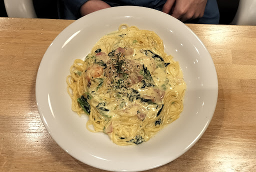 Read moreオサレな洋食屋さんです 店内は小綺麗で、暗すぎず適度に落ち着いた感じです ただテーブル間に敷居が一切ないので周囲の話し声何かはダダ漏れです メニューはオムライス、グラタン、ドリア、パスタ、ピザがメインです オムライスとグラタンを食べましたがどちらも美味しかったです ホワイトソースの中にあってもエビやチキンなどの味がちゃんとして良かったです 量的にも十分でした オムライスは100円で大盛り、50円でチーズ追加可能です 一つ細かいことを言うとエビのしっぽがついたままホワイトソースの中に入っているのは珍しいと思います そのままバリバリ食べられますが気にする人はいると思います 価格は1000円から2000円くらいです ちょっとだけ高く感じますね 徳にピザは1500円は超えてくるの...