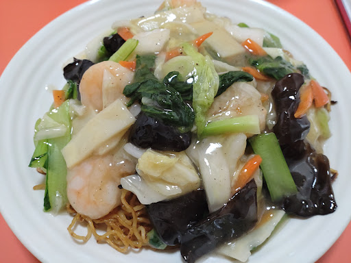 Read more揚げ焼きそばが食べたくて 日曜日の夜に急遽電話したら 大丈夫ですよ☺️と急いで行きました☺️ えび塩揚焼きそば 大エビチリ 餃子 ラーメン 生ビール2杯 烏龍茶