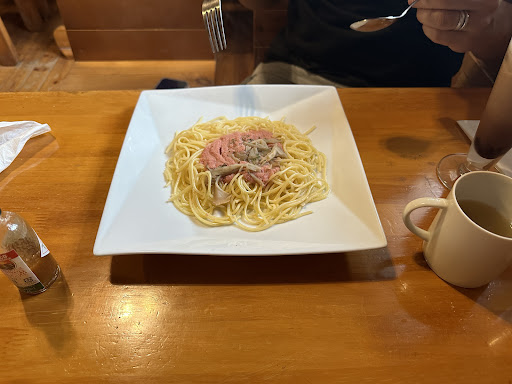Read more手作り感のある木造りの小さな喫茶店です。 客席はカウンターとテーブル数席だけですが、豊富なコーヒーの種類とオシャレなドリンクメニューがあります。2種類のピラフと3種類のスパゲティーから一つずつ選んで盛り合わせてくれる「コンビプレート」はその日の気分で満腹にしてくれる嬉しいメニューです。 お店の場所は目の前が総合運動公園が目印になり分かりやすく、車を駐める場所も充分にあるので気軽に立ち寄れるお店だと思います。 また、プリンやコーヒー豆など一部の商品は道の駅で...