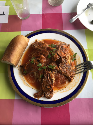周りのお客さんの殆どがオーダーしていた 渡り蟹のトマトスパゲッティ¥950 同じお値段でかなりなボリューム(゚A゚;) グラタン との差がスゴイです!!!