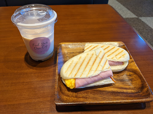 Stopped here for an after 3:30 pm panini set with chai latte (unsweetened how I like it) and chocolate cake with cafe latte. Panini was not bad. The eggs were a bit runny and the bread was toasty. Banana milk...