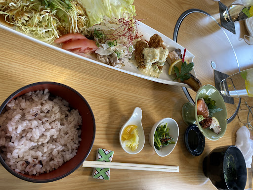 Read moreカジュアルな雰囲気で創作和食をいただけます。定食がたくさんありますが、メインを選らぶチョイスというのがおすすめ。 今回は、ごはん、汁物、前菜、漬物、お作りに天ぷら2品チョイスし1000円。 丁寧に調理されていて、リーズナブルに美味し...