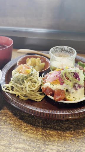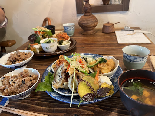 Read moreOpen(11時半)で11時25分くらいに着くと予約した人達が入っていったので予約なしでも良いのか聞くと席が空いているのでOKでしたが 駐車場が狭いので1台で乗り合わせて来てくださいと言っているとのこと。 え?どこかに書いてあったか? 後から来る友達になんて言う?と焦りました💦 12時までに来てくれたら良いと言うので 友達と合流して戻りました。 入店してから提供まで約40分なかなか長かったー。 2種類しかランチメニューが無いのに どうしたんだろう、と思ってしまったので 星3つにしました。 身体に良さそうで美味しかったです。 友人はランチにドリンク、デザートセットを 私はランチドリンクセット+いちじくのデザートで更に+600円で2100円で高くなってしまったけどデザートもとても美味しかったです💕 仕事のお昼には無理でしょうね。 お弁当を取りにくる人もいたので そちらで忙しくて待たされたのかなぁ。