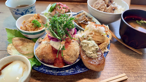 【お店の特徴】 ⭐︎ 古民家風のあたたかな空間で、椅子や照明もひとつひとつに物語。 ⭐︎ 色とりどりの野菜料理に、季節のめぐみが詰まってる。 ⭐︎ 焼き菓子のショーケースには、手作りマフィンがずらり。デザートセットはマフィンを自由に選べるのも嬉しいポイント!