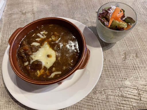 ソファ席に案内されました。 つぐみのお昼ご飯1200円、チーズカレードリア930円を注文しました。 つぐみのお昼ご飯のメインは、1週間ごとに変わるみたいです。この日は、豆腐ハンバーグでした。 ピーマンとこんにゃくの甘辛きんぴら、カレー風味のポテトサラダ、七穀米ご飯、味噌汁、寒天でした。温かいお茶もありました。 どれも優しい味付けで、野菜が美味しかったです。