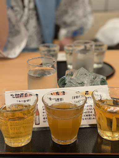 Read more勝浦温泉に素泊まりし、ここを夕食に予約。 21時の予約でしたが、お席が空きましたと20時位にお電話頂きました。で、2時間程滞在。以下注文した商品 ○梅酒三種飲み比べ それぞれの特徴が顕著で楽しめる 見た目めオシャレ ○じゃばら酒 強すぎない酸味が最高 ○お通し お通しのレベルではない、和食懐石の様 ○お刺身盛り合わせ 15種類近くの新鮮で厚切りの赤身、白身は皮を少し塩で味付けし炙ってあり香ばしい。ただ切っただけではなく店主のこだわりを感じる。盛り合わせの写真に魚名をわざわざ書いてくれお土産に頂きました ○まぐろのカマ 香ばしく焼いてあり食べ応え抜群のサイズとマグロたっぷりの身。焦げてるところも香ばしくアクセントになっている。まぐろのレアカツに付いているおろしポン酢をつけて食べるともっと美味しいと店員さんに教えてもらい一口。最高… ○まぐろのレアカツ 外カリカリ、中柔らかしっとり、おろしポン酢に付けて食べるがおろしポン酢だけでも美味い ○ポテトサラダ いぶりがっこ入りで普通のポテサラではない。目の前でポテサラを桜チップでスモークしてくれる。立ち昇る煙もまたうまい。モクモクして場が盛り上がる。 ○まぐろ茶漬け まぐろの出汁が効いてシメにぴったり。マグロは火を通してあるが硬くなく柔らかく最高
