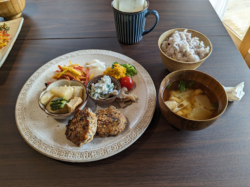 木、金、土と営業されています。 手作り野菜のお料理か色々でランチは選べました。私はミンチカツを選びました。 デザートは奥様特性のアップルパイやチーズケーキ、おはぎがありました。どれも美味しかったです😍 明るくて外を見ながらゆっくりお食事できました。 感染対策もバ...
