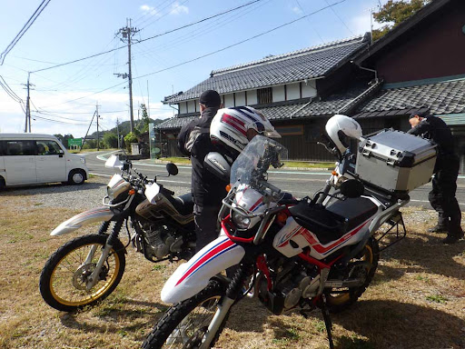 お店の向かいの駐車場にバイク停める (四輪1台スペースに3台だよ)