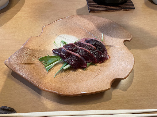 鳥団子は噛むと骨がコリコリしすぎで食感が良くない。 ロースは小さくて薄くて鍋にしゃぶしゃぶのようにくぐらせて食べるように言われたが肉の旨味が全然なくて淡白。 予め鍋に入っていた肉は小さくて硬い。 鍋汁は関西風だからなのかあっさりしすぎて拍子抜け。