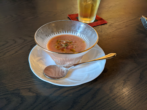 どれも個性的で初めて味わうものがほとんどでした! トマトのビシソワーズはスイカの味が少しするような? 私はチーズが食べられませんでしたが、レバーのパテもおいしかった!(レバーは好きじゃないのにこれはおいしくて食べられました!)パンもオリジナルパンでおいしい! シーザーサラダにスイカが入っていたり。 アワビは刻まれていて食べやすいし、お酒が欲しくなりました…! 個人的には1番楽しみにしていたパエリアは本場の味!これはホントに他で食べられないんじゃないかという美味しさ! 鹿肉は柔らかく、クセもなく、おいしかった! デザートは3種(桃のコンポート・桃のシュークリーム・クレーム・ブリュレ)から選ぶのですが…どれも美味しい。生クリームからなんか他と違う。 豆乳アイスがのっていたのですが、これもまた、こだわりの豆乳アイスで、食べたことないお味。 思ってもいなかったのが、お店の照明を消して、お店のお二方がデザートを運んできてくださりました! そんなこと…自分で予約したので、思ってもいなかったのでびっくり!