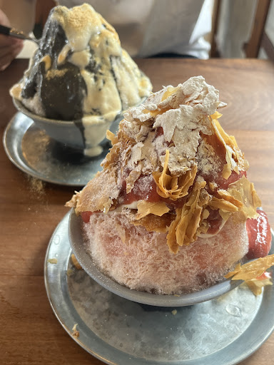 Read moreいちごミルク氷のザクザクパイトッピングと、黒ごまきなこ氷の求肥もちトッピングをいただきました。不自然に甘すぎることもなく、素材の甘さが引き立つ味で、サイズも丁度よかったので最後まで美味しくいただけました。 これまで休日に特別営業されているときに行きたいなと思っていたのですがとても人気なイメージなので、産休に入り健診のタイミングで寄らせてもらいました。お店の佇まいから古民家風かと思っていたのが、インテリアや雰囲気がとてもお洒落で居心地が良く、今度はランチ...