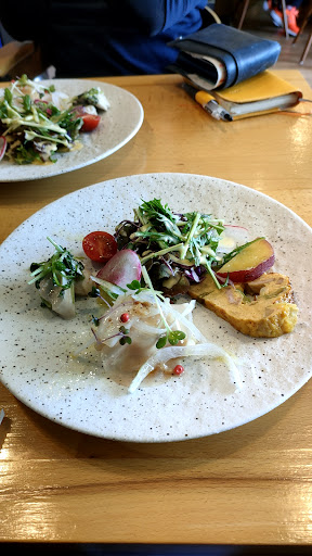 こじんまりしているけれど家具などお洒落で居心地のいいお店でした。イタリアンランチが今はないとのことで前菜と6種類のパスタの中から一品のランチセットと本日のデザートを注文。前菜はサラダや蒸し鶏、スパニッシュオムレツのようなのや生ハムのポテトサラダ巻など入っていてこれだけでもテンション上がりました。サラダにかかっていたコーンのドレッシングはお店でも売っていたのですが、これがめちゃ美味しい!パスタはトロトロナスとベーコンのトマトソースと春キャベツとソーセージのペペロンチーノを注文。どちらもすごく美味しくてこの店を選んで正解でした。トマトソースも甘いようでスパイシーさもあり、言葉で表現が難しいけれどまた食べたいお味です。デザートはピスタチオのアイスと本日のデザートというのがあり、本日のデザートにしたところ、チョコのロールケーキとピスタチオのアイスが乗ってきました。ロールケーキは市販のものかな…ピスタチオのアイスは甘さも香りもちょうどよく美味しい。これもまた食べたいです。総合的に大満足でした。一組一組帰るときには出口までオーナーが見送りに出てくれて、若いオーナーでしたが、一生懸命さと丁寧さとを...