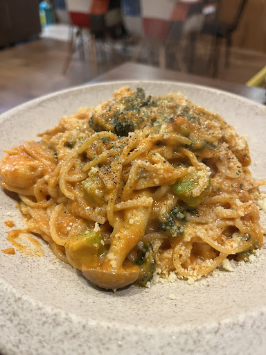 を注文しました。 パスタは普通でしたがなんか鼻につくツーンとしたニオイがちょっと苦手でした。 片付けてしまってあまり料理ができないからとパスタ大盛りにしてくれました。 ピザは外側の耳のとこがサクサクでめちゃくちゃ美味しかったです。 他のも食べてみたいと感じました。