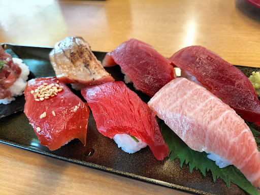 Read more大きな駐車場があり、駐車しやすいです。ただし、駐車入口は、狭いのが、難点かな。土日祝日は、混むので、スシローでの、ランチは、大体15時くらいです。長浜には、スシロー以外に、かっぱさんと、はま寿司があります。 くら寿司は、彦根までいかないと、ありません。 タッチパネルで、注文し、指定のお皿で、近づいてくると、音声でお知らせがありますが、取り忘れた場合などは、直に店員さんを呼ばないと、忘れたごろに、店員さんが、レーンの最終地点に、到着した、すでに新鮮さが、なくなったお寿司をお持ちくださるサービスがあります。 私の場合は、音声案内があったので、待っていると、反対側のレーンを回っていたので、まあ、いいかと放置しておいたら、かなり時間が過ぎたあと、店員さんが、お持ちくださいましたので、ありがたくいただきましたが、昔みたいに、100円皿オンリーなら、お店側のロスで、よかったかもしれないけど、高額皿なら、ロスも、大きいですよね。それとも、意図的に、注文皿を取り忘れる人が、一定数いるかも、しれませんね。 また、システム的に、注文数と消費数が、異なる対応かも。 上記以外なら、確りとその旨を、言わないと、間違った対応になりかねないかも、しれませんね。 インド鮪7貫食べ比べ美味しくいただきました。お値段は、回らないお寿屋さんの寿司ランチと同じです。 ...
