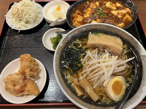 開店おめでとうございます。 今回はラーメンセットを注文しました。税込980円。この価格でラーメンに一品つくのは破格。 ただ、ラーメンのお味に関しては「スーパーの食堂で売っているような麺と味」です。別に不味くはないですが、特段美味しい感じもない。良くも悪くも「普通」 チャーハンも味が薄いかも、胡椒や醤油を足して食べました。 元は山交関係の建物でしたがリノベして中は綺麗です。店員さんの雰囲気も明るくて優しくて良い。こういう店独特の「謎の音楽」「店員さんの外国語でのやりとり」も味があって私は好きです。 今度は中華料...