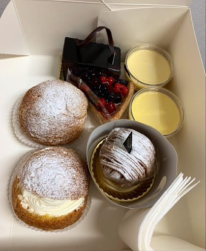 週末のおやつにケーキ屋さん巡り。 雨の日のお昼前に伺いました。 お店の前の駐車所も埋まっており、こじんまりとした店内も賑わっておりました。 ケーキ目当ての客は私だけで、皆さんパンを購入されていました。ケーキの種類、比較的少なめでしょうか。生クリームを使ったケーキが見当たらず、ショートケーキがなかったのがとても残念でした。 プリン、シュークリームを2種類、ケーキを3種類購入。7点購入しましたが、全部で2200円とリーズナブル。 家族とわいわいいただきました。