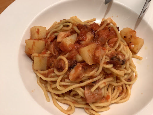 Read more【2024.11訪問】 休日のランチタイムに家族3人で利用。 早めの時間だったのにお客さんが多く、ギリギリ待ちにならない程度の入り。 夜は来たことあるけどお昼は初めて。 メニューの種類が多くてすごく目移りする。 自分はスパゲッティシチリア、妻はムルタデッラハムピザ、娘はタニアッテレ生ウニのトマトソース。 娘は何故かパスタソースは生ウニにハマってる。高いのに少しも食べさせてもらえない。 でもソースを少しだけパンに付けて食べさせてもらう。 結局のところ、どれも美味しい。 美味しかったで...