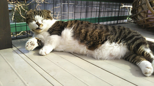 ネコに愛情たっぷり注いでいるのはよくわかる。 古民家猫カフェというのもまったりしていて良い。 だけど....き、汚い。ベランダや庭?に散乱している使い古したソファや家具や雑貨たち。 隙間から見えるスタッフオンリーのキッチンの乱雑さには閉口した。 二階はかなりのケモノ臭。