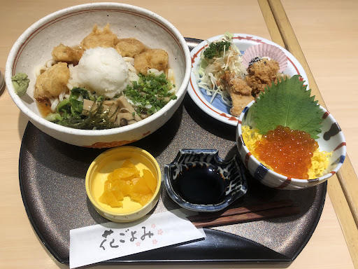 こちらでディナーを取らせていただきました。わたしは海老おろしうどんに唐揚げとミニ丼のセットを頼み、奥さんは石焼きビビンバを頼みました。うどんは麺がつるしこでとても美味しかったです。海老天が5つも入っており、きのこと大根おろしもあり、かなりボリュームがあります。さらに唐揚げ2個も、揚げたてサクサクでおいしく、ミニ丼でいくら丼を頼みましたが、こちらも満足出来る内容でした。成人男性ならボリュームも満足出来ますし、味もおいしくまた来たいと思いました。奥さんの石焼きビビンバもボリュームが多く、女性一人では食べきれないかも知れません。石焼きビビンバに味噌汁がついてくるのですが、80円プラスでうどんに出来るようなので、男性はこちらが良いかもしれません。 場所はアピタ二階のレストランエリアにあります。金曜の夜に訪れたのですが、店内はわりかしすいていて、もっと人が居て...