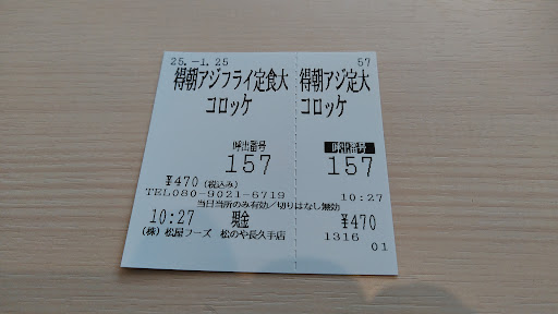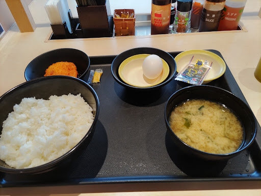 Read more今話題の『トロける豚角煮かつ』を食べる目的で、2023/10/28(土)06:50再来店! 広告の¥930(角煮カツ×3)ではなく¥890(ロースカツ+角煮カツ×1)を敢えてチョイス! これは、前回のラムカツの教訓ですね~ 先ずは角煮カツは若干小ぶりながら角煮だから柔らかく味も滲みて美味しい、角煮専用のタレが別添えされててコレが本格派の味付け! 敢えて角煮1個にたのは、やはりロースカツ1枚有るとボリューム感が全く違いますね、別添えのタレをロースカツに漬ければ角煮に早変りしますね! 松のやのロースカツは柔らか厚みもソコソコ有るし! 松のやは🍚大盛/お替り無料だからね、ライスマネジメント考えると、カツのボリュームは大事! ¥890の角煮1個+ロースカツ/🍚大盛がベストかな 大食派は最初🍚普通でお替り(味噌汁も)が良いかな!ご飯は人参ドレッシングかすだちドレッシング(最近仲間入)を使うと味変でよりモリモリ食べられる 実はこの少し前06:30今池の松屋で、魯肉飯食べようと思ったら時間帯の問題なのか画面が黒くなってて頼めなかった… せめて理由を教えて欲しかった… 松屋&松のやの、券売機の使い難いのは、定評が有りますからね、ソレを売りにしてモバイルオーダーを推進したりもしてる? 〜〜以前の口コミ(4ヶ月前)〜〜〜〜 気になっていた玉子かけご飯朝定食(¥250)を食べるため、初の松のや来店です ~11:00迄なので10:30位に到着しましたが、駐車場はとても広く、店内もカウンターやテーブル半個室みたいな所もあり、カジュアルながらも高級感もある素敵な店内で、家族連れでも違和感ないとても良い印象です。 券売機は、QRコードと交通系ICカード主体のキャッシュレスですが、松屋もそうだったかな?注文は、まぁこんなもんかな、購入と発注が連動しています! 大きなモニターで出来上がりは連絡有り、玉子かけご飯朝定食(コロッケを選択)受取! ゴハンの量は、小中大が選べて料金は同一です!因みに大盛を選びました🍚 まぁ¥250としては、パーフェクトですよね、しかも何と、🍚味噌汁がおかわり自由なんですけど、まぁこれは遠慮すべきかな… 受付嬢の対応もとても良かったですね~おかわり自由は知ってましたが、受取時にちゃんと説明してくれました、笑顔で言うのでとても感じが良かったです。 それと、テーブル上の調味料はシンプルですが、人参ドレッシングが超美味でした~ 次回は、本来のカツ...