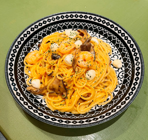 「海老ときのこのモッツァレラロブスタークリーム」を注文しました。 濃厚なクリームソースに海老がぷりぷりでとってもおいしかったです✨ 量が少なめに感じました。