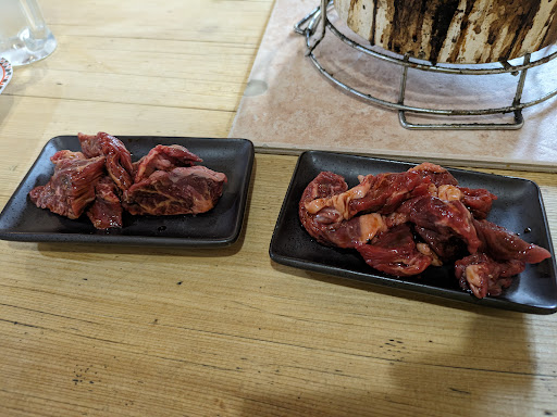 お肉……美味しい! 火の着ついた七輪持ってきてくれるのですが 最初の頃より、炭火は食べ終わる頃が1番火力が落ち着いていていい感じでした。